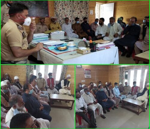 ایس ایچ او تھانہ ہنڈواڑہ کی زیرصدارت اجلاس * انسپکٹر پرویز احمد اجلاسوں میں ٹریڈرز فیڈریشن ، سول سوسائٹی کے ممتاز ممبران ، سرپنچوں ، پنچوں اور نمبرداروں سمیت لوگوں کی ایک بڑی تعداد نے شرکت کی۔