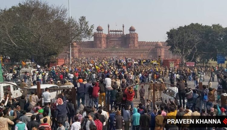 کسانوںنے دلی کے لال قلعے پر پرچم لہرایا ، مرکزی زرعی قانون کو واپس لینے کے حق میں نعرے بازی