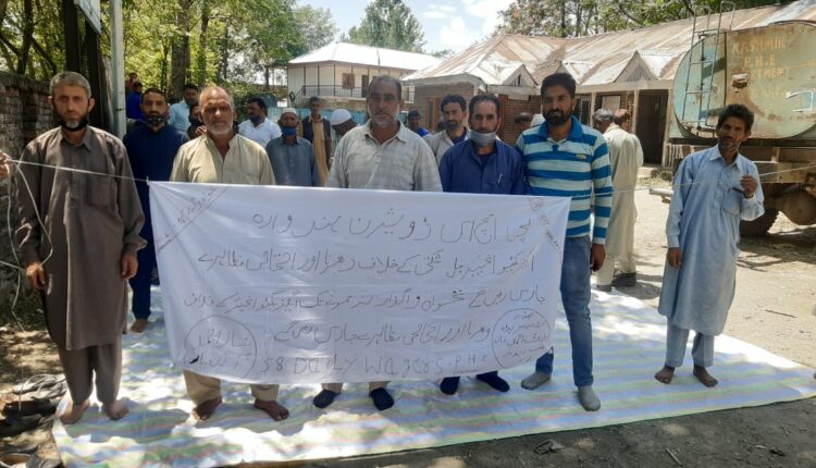 ہندوارہ میں ڈیلی ویجرس کا رُکی پڑی تنخواہوں کو لیکر کیا زور دار احتجاج