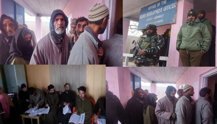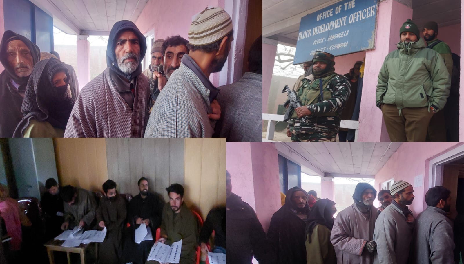 سخت ترین سیکورٹی حصار کے بیچ شمالی ضلع بانڈی پورہ کے حاجن اے اور کپواڑہ کے درگمولہ علاقے میں ضلع ترقیاتی کونسل (ڈی ڈی سی) کے انتخابات کی دوبارہ ووٹنگ جاری ہے