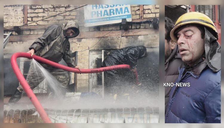 راجباغ سرینگر میں آگ کی واردات میں گودام خاکستر ، دو فائر سروس اہلکار زخمی