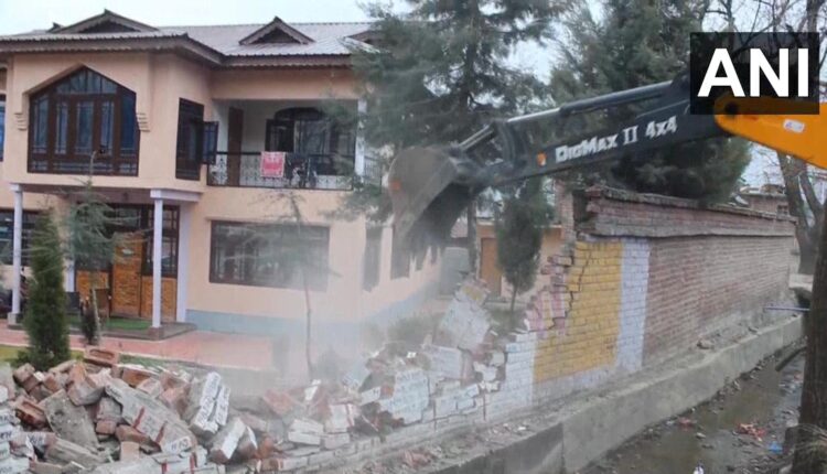 سرکاری اراضی پر تعمیر کا الزام ،پہلگام میں حزب جنگجو کے مکان کی دیوار مسمار کر دی گئی
