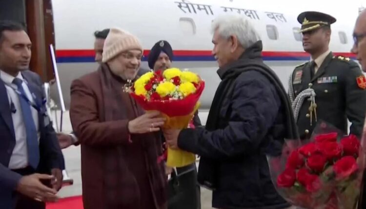 وزیر داخلہ امیت شاہ جموں پہنچ گئے ہیں جہاں ہوائی اڈے پر لیفٹنٹ گورنر منوج سنہا اور دیگر افسران نے ان کا استقبال کیا