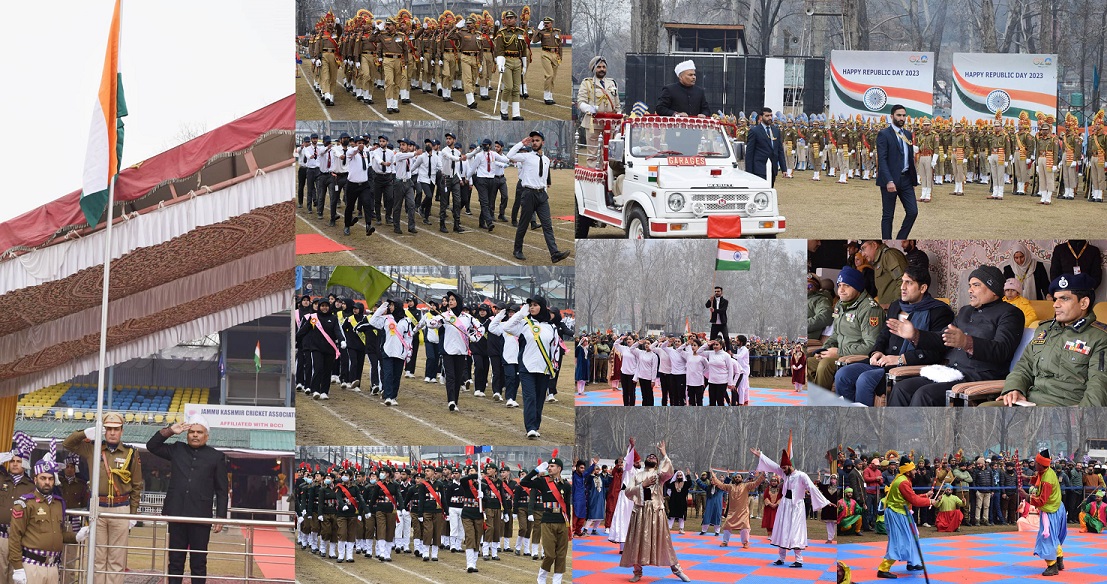 سری نگر :74 ویں یوم جمہوریہ کے سلسلے میں گرمائی دارالخلافہ میں آج شیر کشمیر کرکٹ سٹیڈیم سونہ وار سری نگر میں فُل ڈریس ریہر سل کا اِنعقاد کیا گیاتاکہ قومی تقریب کا جائزہ لیا جاسکے۔