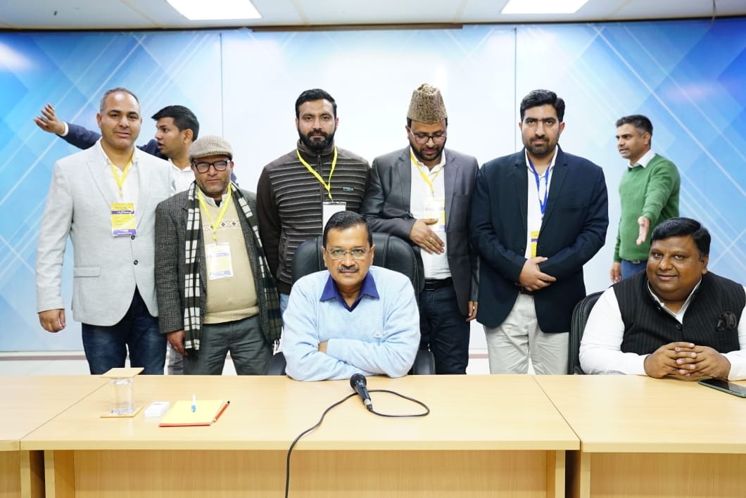 عام آدمی پارٹی جموں کشمیر یونٹ کے لیڈران اورند کیجروال اور سندیپ پاٹھک سے ملاقی