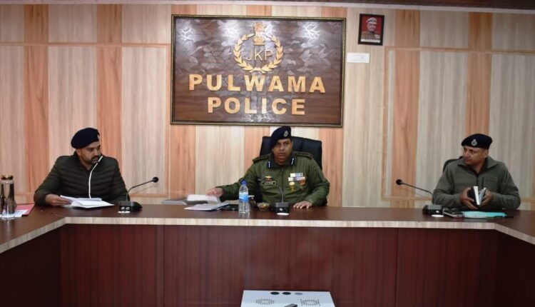 ایس ایس پی پلوامہ نے ضلع میں جرائم اور سیکورٹی منظر نامے کا جائزہ لینے کیلئے میٹنگ کی صدارت کی