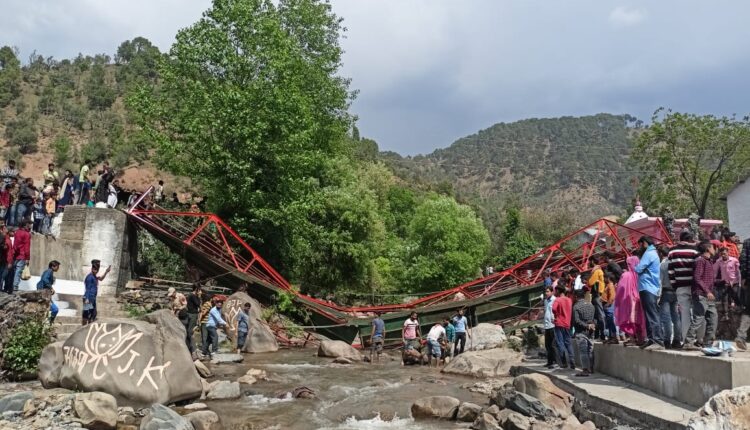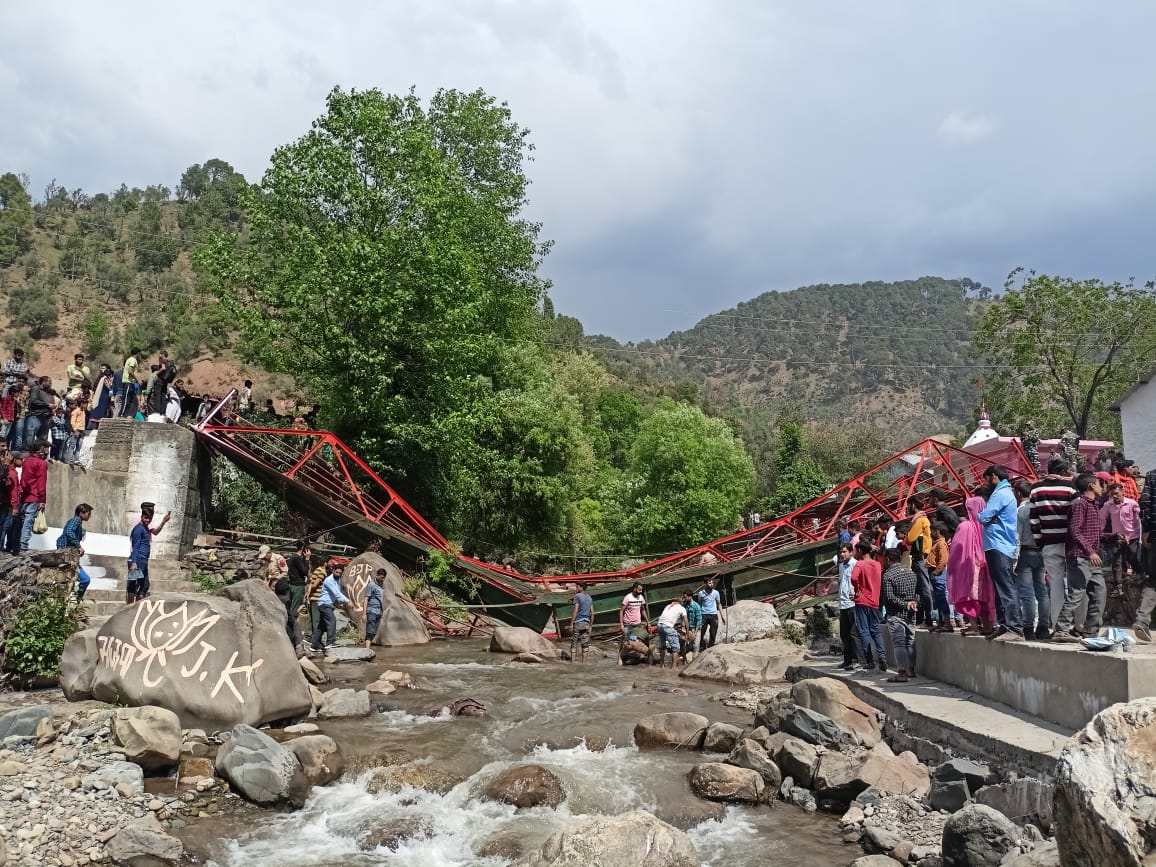 حکام نے بتایا کہ ادھم پور کے بین گاؤں کے بینی سنگم میں اسٹیل کا ایک فٹ برج اس وقت گر گیا جب علاقے میں بیساکھی تہوار کی تقریبات