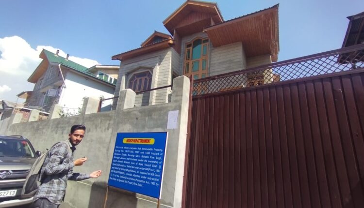 این آئی اے نے پیر کے روز سری نگر کے رام باغ علاقے اور سوئیہ بوگ بڈگام میں حزب چیف سید صلاح الدین کے دو بیٹوں کی جائیدادیں ضبط کیں۔