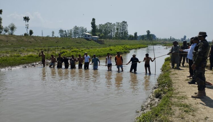 فوج کی جانب سے سرینگر میں فلڈ چینل میں ڈوبنے والے کی لاش کو نکالنے کے لئے بچاو آپریشن جاری ہے