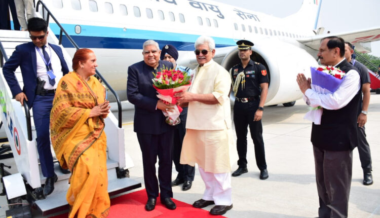 نائب صدر جگدیپ دھنکھر دو روزہ دورے پر جموں پہنچ گئے جس دوران لیفٹنٹ گورنر منوج سنہا نے انتظامیہ کے دیگر افسران کے ہمراہ ان کا جموں ہوائی اڈے پر استبقال کیا