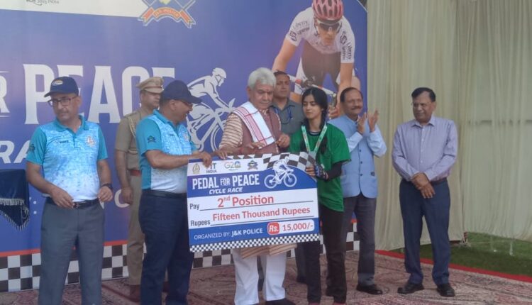 لیفٹیننٹ گورنر منوج سنہا نے آج جموں کشمیر پولیس کے زیر اہتمام ’پیڈل فار پیس‘ سائیکل ریس -2023 کی ایوارڈ تقریب میں شرکت کی۔