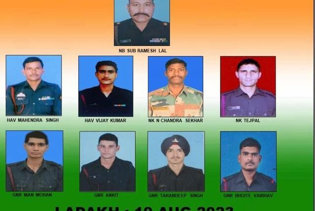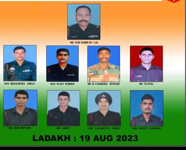 لداخ یونین ٹریٹری کے لہیہ علاقے میں سنیچر کی شام سڑک حادثے میں نو فوجی از جان جبکہ دو دیگر زخمی ہوئے۔دفاعی ترجمان نے بتایا کہ حادثے میں جاں بحق ہوئے اہلکاروں کی شناخت نائب صوبیدار رمیش لال، حوالدار مہندر سنگھ، حوالدار وجے کمار، نائیک چندر شیکھر ، نائیک تیج پال، موہن، انکت ، ترندیپ سنگھ اور بھوٹیا وبھاو کے بطور ہوئی ہے۔