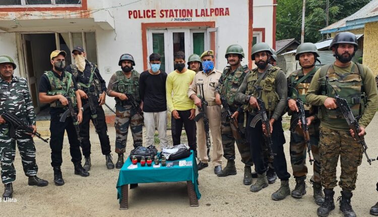 سری نگر، جموں وکشمیر پولیس نے سرحدی ضلع کپوارہ میں دو الگ الگ کارروائیوں کے دوران لشکر طیبہ سے وابستہ 3 جنگجو معاونین کو گرفتار کرکے ان کی تحویل سے 6 گرینیڈ بر آمد کئے ہیں۔