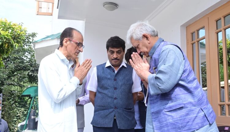 لیفٹیننٹ گورنر منوج سنہا نے پیر کو سرینگر کے ہمہامہ میں ڈی وائی ایس پی ہمایوں مزمل بٹ کی رہائش گاہ کا دورہ کیا۔