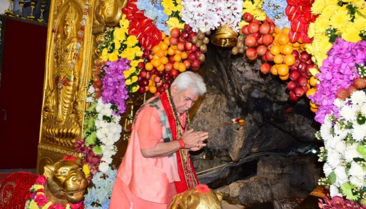 مہا اشٹمی کے موقع پر لیفٹیننٹ گورنرمنوج سنہا نے آج ویشنو دیوی کے مندر میں پوجا کی اور جموں کشمیر کے امن، خوشحالی اور ترقی کیلئے دعا کی۔لیفٹیننٹ گورنر نے ویشنو دیوی شرائن بورڈ کی ویب سائٹ پر ’لائیو درشن سہولت‘ اور دو لسانی چیٹ بوٹ کا آغاز کیا اور عقیدت مندوں کے لیے وقف کیا۔