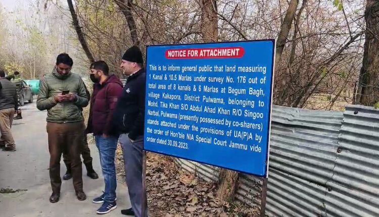 سرکاری ذرائع نے بتایا کہ این آئی اے نے پلوامہ میں غیر قانونی سرگرمیاں (روک تھام) ایکٹ (یو اے پی اے) کے دفعات کے تحت اراضی کی صورت میں جائیداد کو ضبط کیا۔