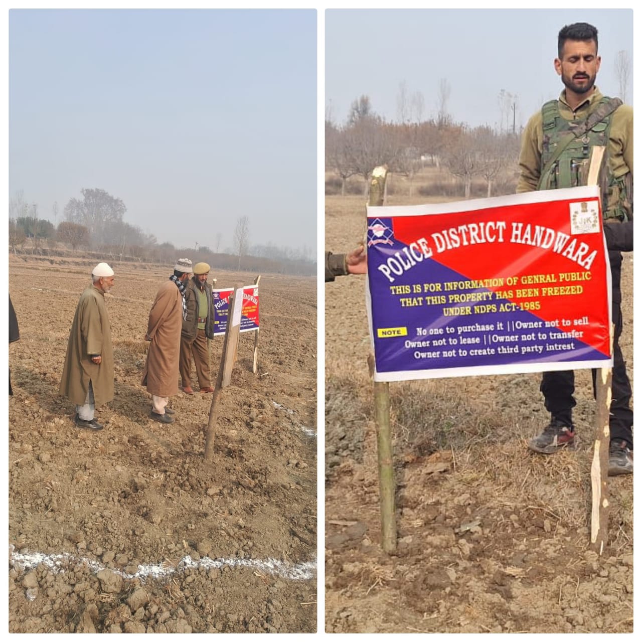 انہوں نے کہا: فیاض احمد ملہ ولد غلام محی الدین ملہ ساکن مقام ہمونپورہ کرال گنڈ ہندوارہ نامی بدنام زمانہ منشیات فروش کی 7 مرلوں پر مشتمل اراضی کو این ڈی پی ایس ایکٹ 1985 کے تحت منسلک کر دیا گیا’۔ان کا کہنا تھا کہ مذکورہ منشیات فروش پولیس اسٹیشن کرال گنڈ میں درج کئی مقدموں میں ملوث ہے۔