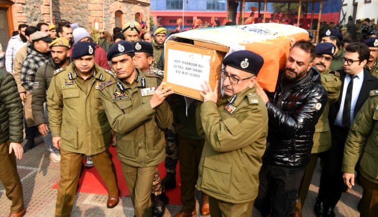 آہوں اور سسکیوں کے بیچ پولیس آفیسرکی آخری رسومات ادا ، نماز جنازہ میں ہزاروں کی تعداد میں لوگوں نے کی شرکت