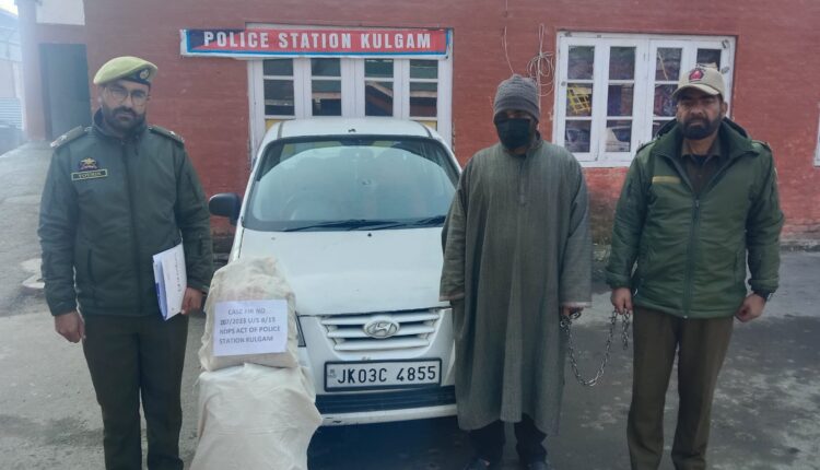کولگام میں پولیس نے منشیات فروش کو گرفتار کیا، ممنوعہ مادہ برآمد