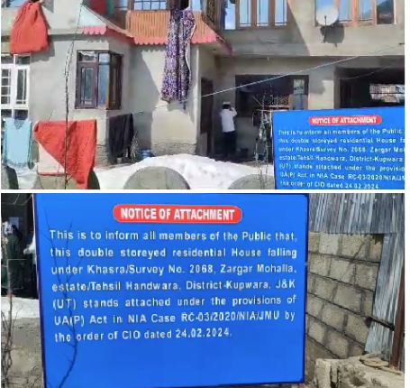نارکو ٹیرر فنڈنگ کیس : ہند وارہ میں چار ملزمان کی جائیداد این آئی اے نے ضبط کر لی
