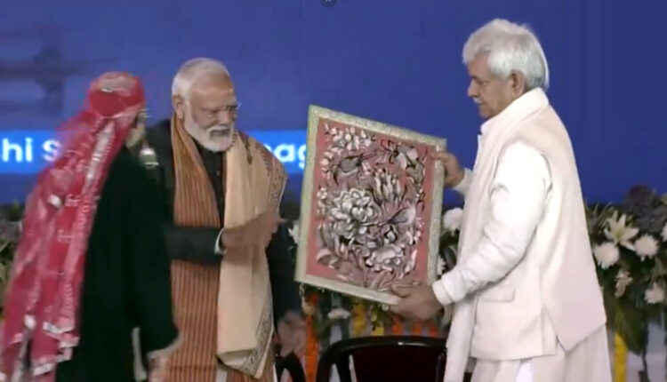 لیفٹنٹ گورنر منوج سنہا نے سرینگر کے بخشی اسٹیڈیم میں وزیر اعظم نریندر مودی کو مبارکباد پیش کی جہاں وزیر اعظم نے ”وکست بھارت وکشت جموں کشمیر“ پروگرام میں شرکت کی