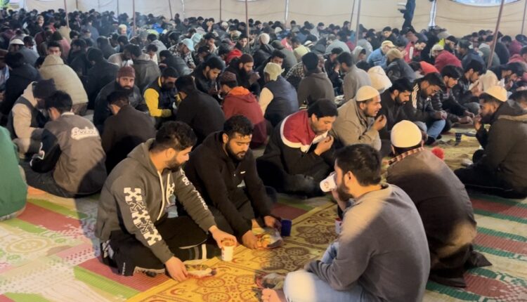 سینکڑوں کی تعداد میں روز دار روزانہ جماعت کے ساتھ افطار کرکے اللہ کی رحمت تلاش کرتے ہیں