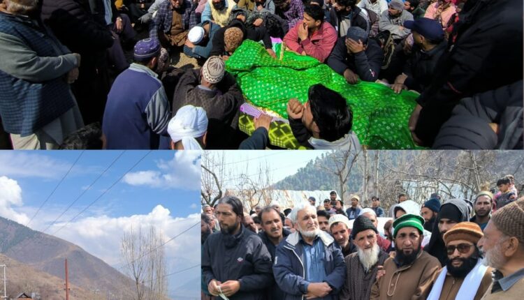 کشمیر پریس سروس نمائندہ ریاض بٹ کے موصولہ اطلاعات کے مطابق 21 سالہ زخمی نوجوان نامی فہد شاہ ولد پیر گلاب شاہ ساکنہ ولی وار لار صورہ میڈیکل انسٹی چوٹ میں زخموں کی تاب نہ لاکر زندگی کی جنگ ہار گیا اورجونہی مذکورہ کی نعش اس کے آبائی گاو¿ں لار ولی وار پہنچ گئی تو پورے علاقے میں صف ماتم بچھ گئی اور پرنم آنکھوں کے ساتھ مذکورہ کو سپرد خاک کر دیا گیا۔