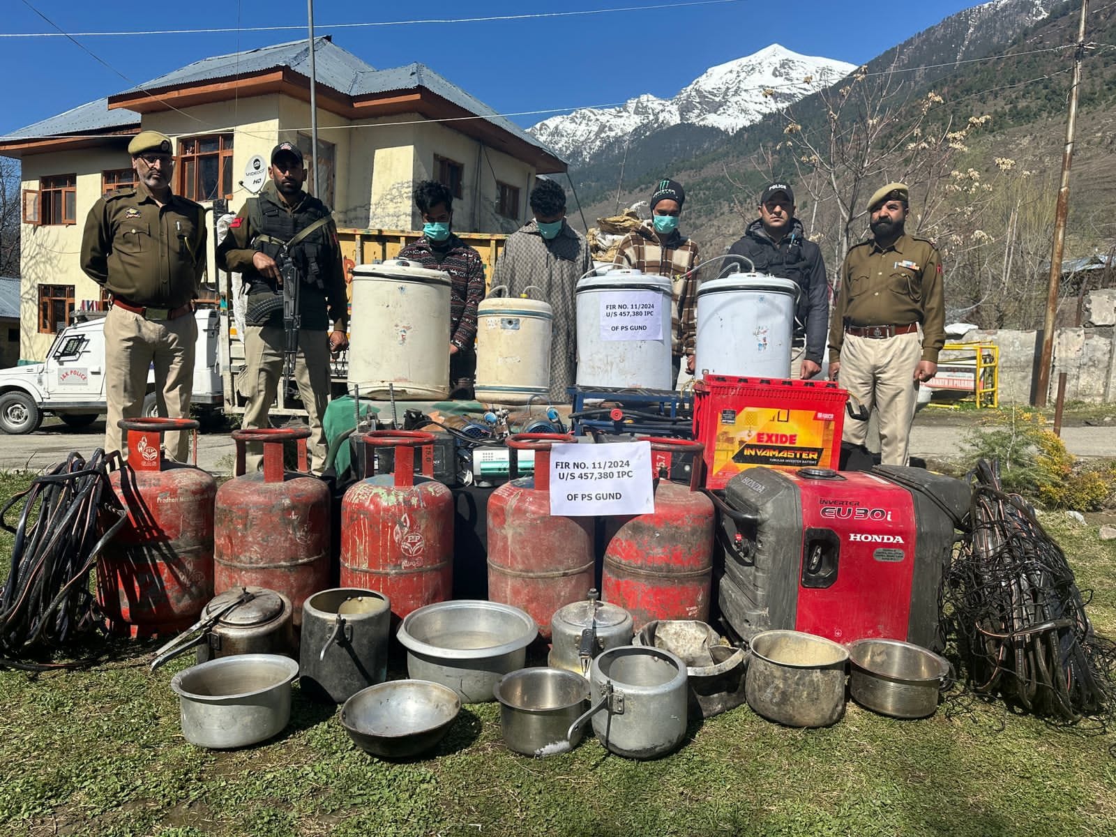 ایک پولیس ترجمان نے تفصیلات فراہم کرتے ہوئے کہا کہ پولیس اسٹیشن گنڈ کو 22 مارچ 2024 کو ایک شکایت موصول ہوئی جس میں تجمل حسین نامی ہنگ پارک ریستوران کے مالک نے کہا کہ 21 اور 22 مارچ کی درمیانی شب نامعلوم افراد نے تالوں کو توڑا اور اس کے ریستوران میں گھس گئے جہاں سے انہوں نے قیمتی اشیا جیسے جنریٹر، دو انوٹر یونٹ، ٹرانسفارمر، گیس سٹو، کافی مشین، گیس سلینڈر، برتن، الیکٹرک تار وغیرہ کو اڑا لیا اور سی سی ٹی وی کیمروں اور دیگر چیزوں کو نقصان پہنچایا۔