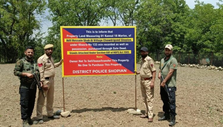 منشیات فروشوں کے خلاف کارروائی جاری رکھتے ہوئے شوپیان میںپولیس نے بد نام زمانہ منشیات فروش کی جائیداد ضبط کر لی ہے ۔
