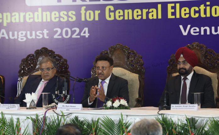 الیکشن کمیشن آف انڈیا جموں و کشمیر میں جلد از جلد انتخابات کرانے کیلئے پرعزم ہے اور کسی بھی اندرونی یا بیرونی طاقت کو انتخابی عمل کو پٹری سے اتارنے کی اجازت نہیں دے گا کا اعلان کرتے ہوئے چیف الیکشن کمشنر راجیو کمار نے کہا کہ انتخابات کی صحیح تاریخوں کا اعلان اس وقت کیا جائے گا جب کمیشن سیکورٹی کی ضروریات کا حتمی جائزہ لے گا۔