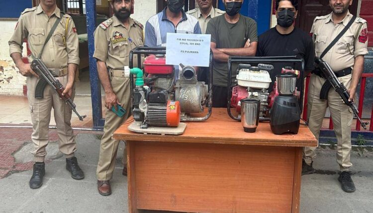 تفصیلات کے مطابق پلوامہ پولیس کو ارشاد احمد ڈار ولد غلام محمد ڈار ساکنہ لاجورہ پلوامہ کی طرف سے ایک چوری کی شکایت موصول ہوئی تھی جس پر پولیس نے کیس درج کرکے کارورائی کی اور چوری کے معاملے میں ملوث تین افراد کو کامیابی کے ساتھ گرفتار کیا۔ پولیس کے مطابق یہ شکایت ڈنگر پورہ پلوامہ میں زیر تعمیر شیپ بلڈنگ سے واٹر پمپ کی چوری سے متعلق تھی۔