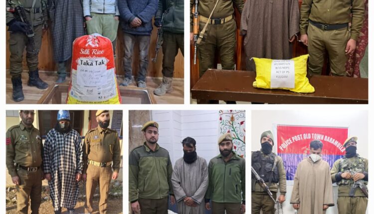 کولگام ، بارہمولہ ، اننت ناگ اور اونتی پورہ میں07 منشیات فروش گرفتار ،ممنوعہ اشیاءبرآمد