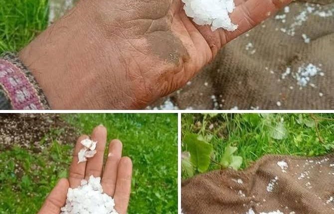 موسم کا جارحانہ رخ جاری ، شوپیان کے کئی علاقوں میں تازہ ژالہ باری ، دیگر علاقوں میں ہلکی بارشیں