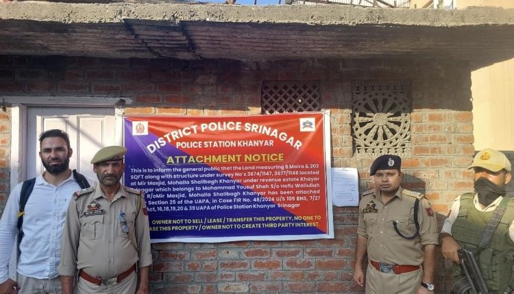 سرینگر پولیس نے غیر قانونی سرگرمیاں (روک تھام) ایکٹ (یو اے پی اے) کے تحت ملی ٹنسی سے متعلق تحقیقات کے سلسلے میں ڈیڑھ کروڑ روپیے مالیت کی غیر منقولہ جائیداد کو ضبط کر دیا۔ایک پولیس ترجمان نے اپنے ایک بیان میں تفصیلات فراہم کرتے ہوئے کہا کہ سری نگر پولیس نے رہائشی ڈھانچے کے ساتھ 8 مرلہ اور 202 مربع فٹ اراضی پر مشتمل ایک رہائشی جائیداد کو منسلک کیا ہے جس کی مالیت تقریباً 1.5 کروڑ روپیے ہے۔انہوں نے کہا کہ ‘میر مسجد محلہ، شالہ باغ خانیار میں واقع اور سروے نمبر 3674/1147 اور 3677/1148 کے تحت آنے والی جائیداد محمد یوسف شاہ ولد حافظ ولی اللہ شاہ کے نام پر درج ہے جو اس وقت مسعود حسین شاہ ولد محمد یوسف شاہ کے قبضے میں ہے’۔