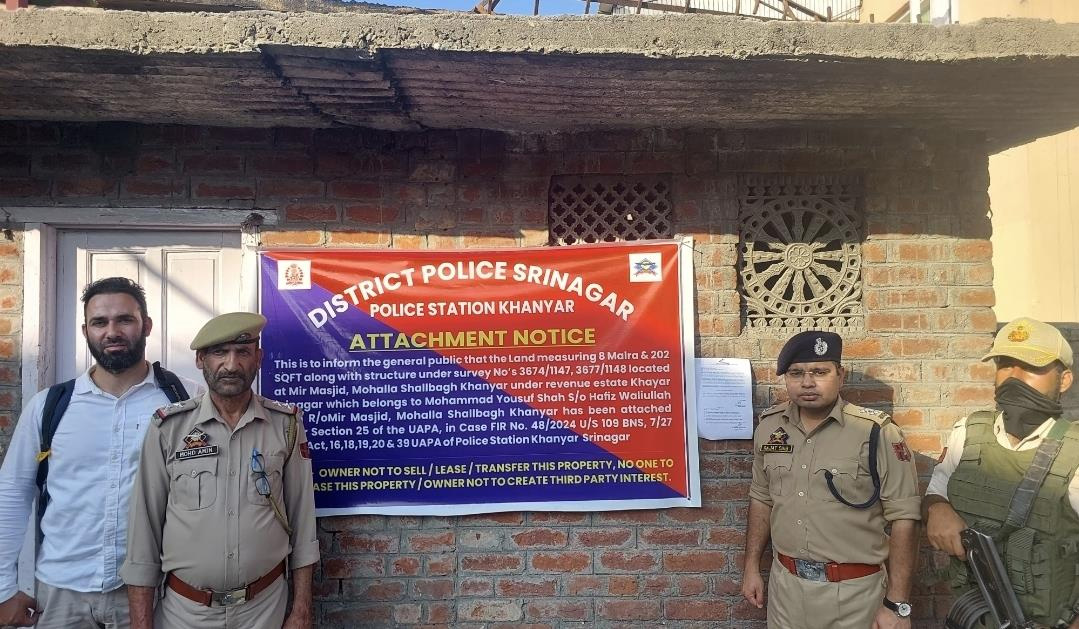 بیان میں کہا گیا: ‘ یہ ضبطی غیر قانونی سرگرمیاں (روک تھام) ایکٹ (یو اے پی اے) کی متعلقہ دفعات کے تحت پولیس اسٹیشن خانیار میں درج ایف آئی آر نمبر 48/2024 کے سلسلے میں بھارتیہ نیا سنہتا (بی این ایس) کے سیکشن 109، انڈین آرمز ایکٹ کی 7/27، اور ایکٹ 16، یو اے پی، 13، 19، 13، 16، 19، 18 کے سیکشن 109 کے تحت انجام دی گئی’۔انہوں نے کہا: ‘ تحقیقات سے ثابت ہوا ہے کہ یہ جائیداد دہشت گردی کی سرگرمیوں سے منسلک غیر قانونی رقم سے حاصل کی گئی تھی۔ یو اے پی ایکٹ کے سیکشن 25 کے تحت کام کرتے ہوئے، غیر منقولہ جائیداد کو قانونی طریقہ کار کے بعد باضابطہ طور پر ضبط اور منسلک کر دیا گیا ہے’۔ان کا کہنا تھا: ‘اٹیچمنٹ نوٹس کے ذریعے، مالک کو مذکورہ پراپرٹی کو کسی بھی طریقے سے بیچنے، لیز پر دینے یا منتقل کرنے سے منع کیا گیا ہے’۔