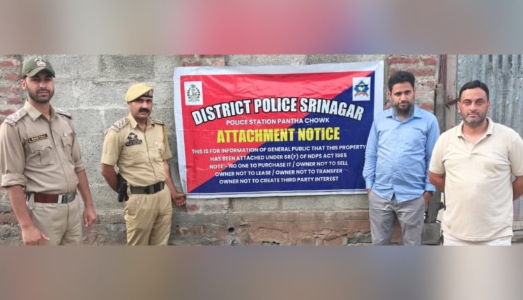 سرینگر میں این ڈی پی ایس ایکٹ کے تحت لاکھوں روپیے مالیت کی غیر منقولہ جائیداد ضبط:پولیس