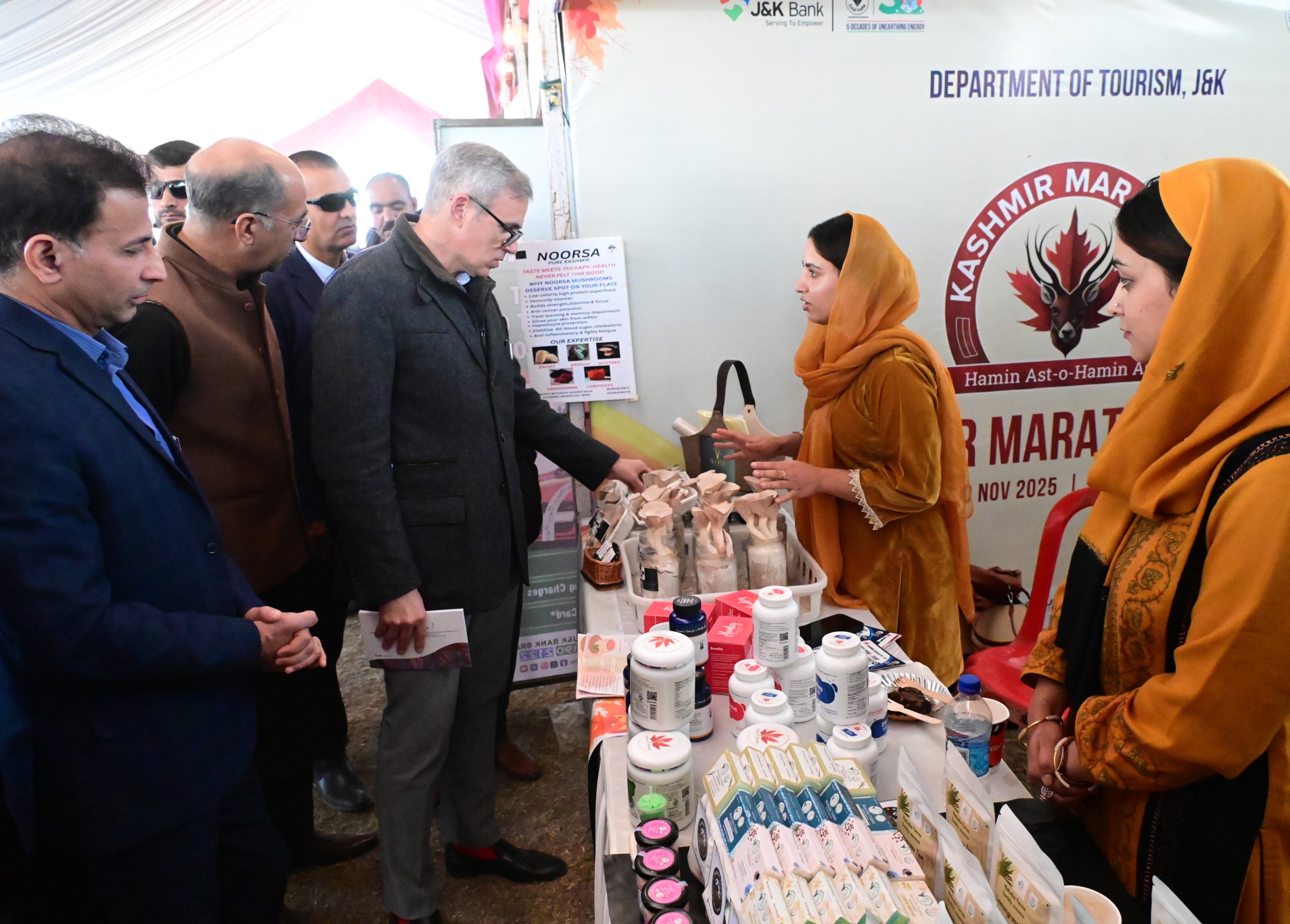 وزیراعلیٰ عمر عبداللہ نے آج پولو ویو سری نگر میں کشمیر میراتھن ۔ 2025 کی نمائش کا اِفتتاح کیا۔