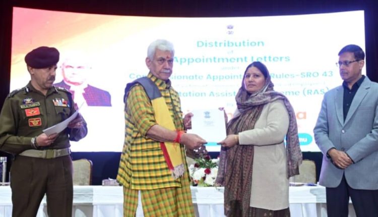 لیفٹنٹ گورنر منوج سنہا نے جموں صوبے کے 41 دہشت گردی متاثرین کے لواحقین میں تقرری نامے تقسیم کیے