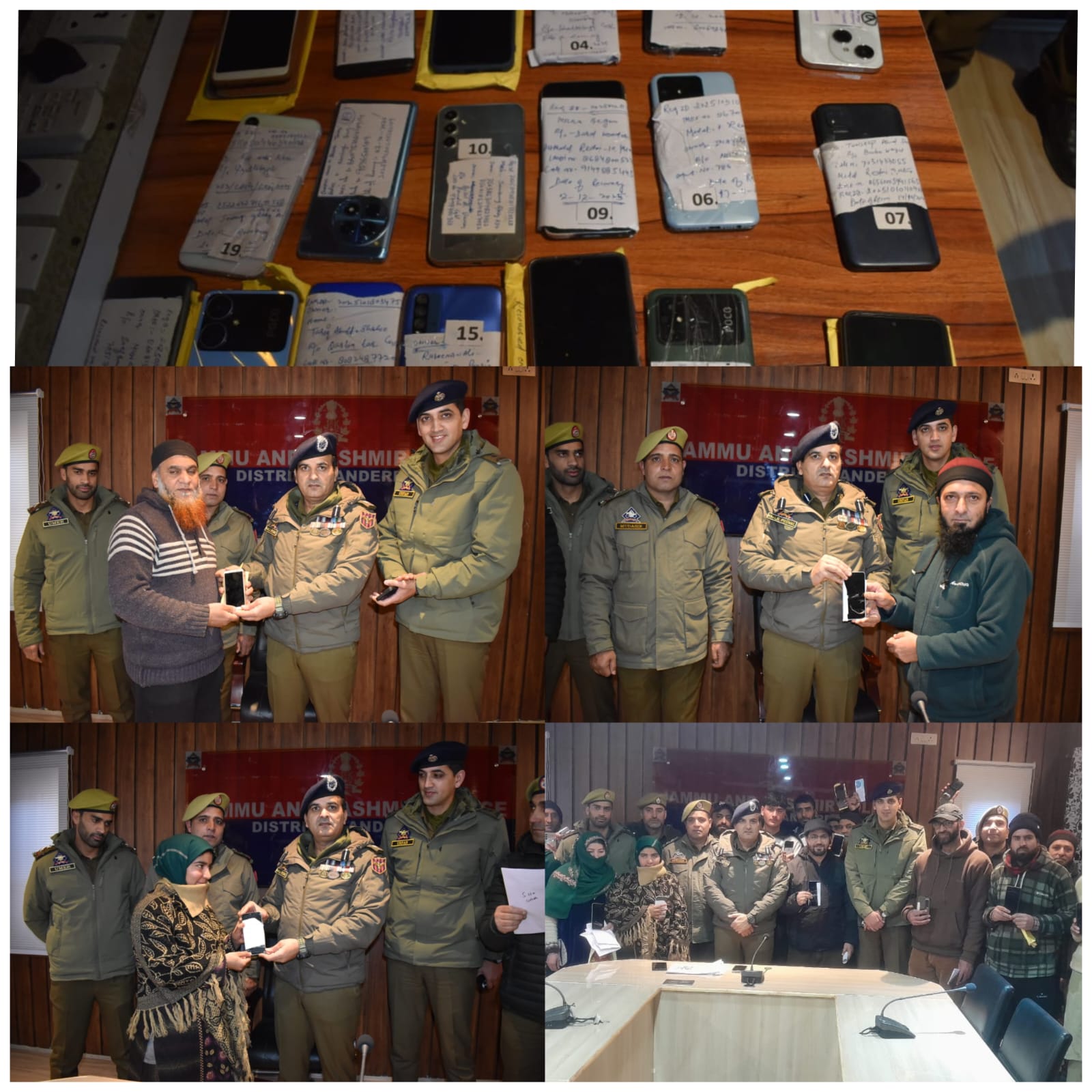 گاندربل پولیس نے لاکھوں روپے مالیت کے 46گمشدہ موبائل فون برآمد کر کے حقیقی مالکان کو واپس کئے