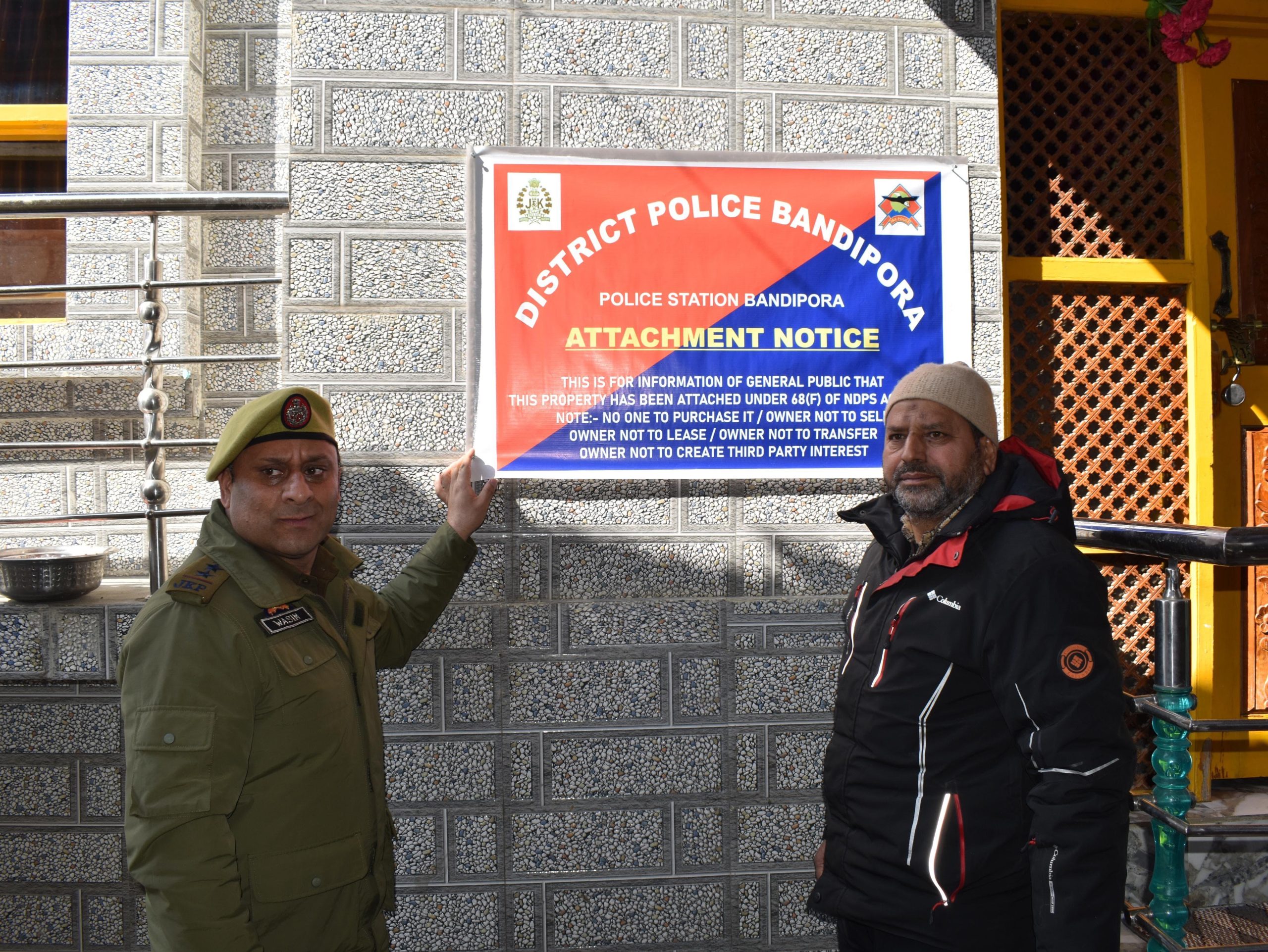 بانڈی پورہ پولیس کے ذریعہ کی گئی تحقیقات کے دوران جائیداد کی شناخت غیر قانونی طور پر حاصل کی گئی جائیداد کے طور پر کی گئی۔ یہ جائیداد بنیادی طور پر مالک کے ذریعہ نشہ آور ادویات اور سائیکو ٹراپک مادوں کی غیر قانونی اسمگلنگ سے حاصل کی گئی تھی۔بدنام زمانہ منشیات فروش این ڈی پی ایس ایکٹ کے تحت جموں کوٹ بھلوال جیل میں زیر حراست تھا اور اسے رہا کر دیا گیا ہے۔یہ آپریشن بانڈی پورہ پولیس کے منشیات کی لعنت سے نمٹنے کے عزم کا اعادہ کرتا ہے۔