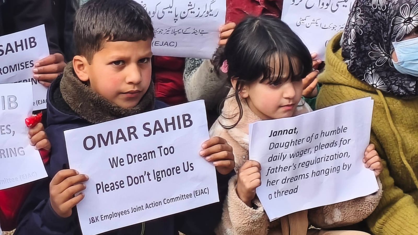 مستقلی کا مطالبہ : سرینگر میں ڈیلی ویجر ملازمین کا بچوں کے ہمراہ احتجاج درج