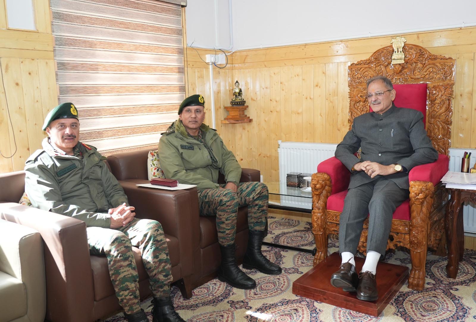 فوج کے شمالی کمانڈر لیفٹنٹ جنرل پرتک شرما نے لیہہ میں لداخ کے لیفٹنٹ گورنر کویندر گپتا سے ملاقات کی اور انہوں نے سیکورٹی کی صورتحال پر تبادلہ خیال کیا۔