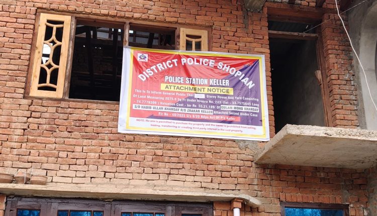 شوپیان میں منشیات کی کمائی سے حاصل کی گئی غیر منقولہ جائیداد ضبط: پولیس